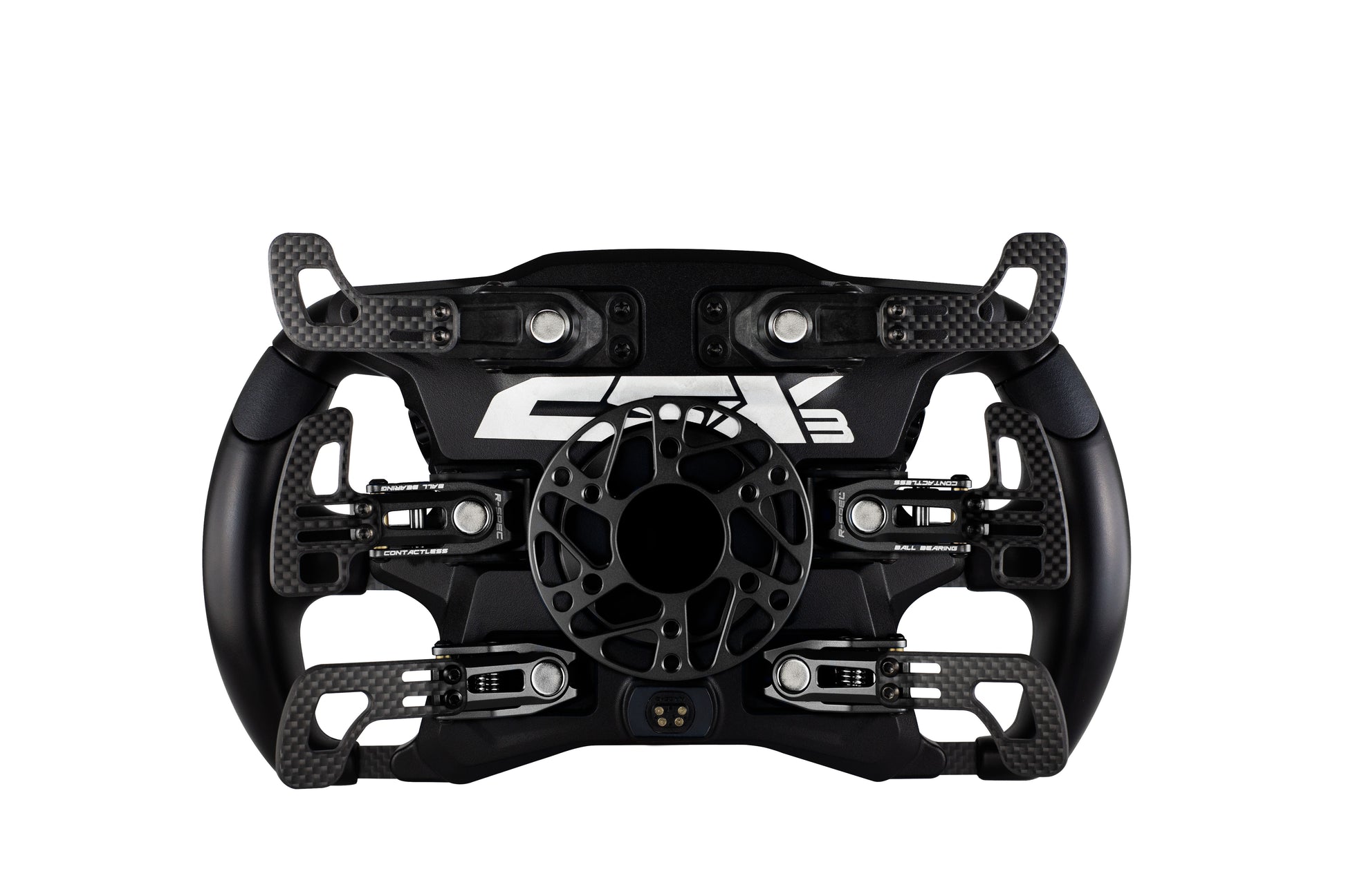 20 programmable input controls including 12 buttons, 8 rotary encoders two of which with dual function as toggle/joysticks and 2 are ergonomically integrated into the grips, plus shift paddles and clutch paddles that all combine with customizable RGB LED indicators and backlit buttons. In addition to functionality and versatility, the CSX-3 makes for a beautifully striking wheel from the first glance and at every use.