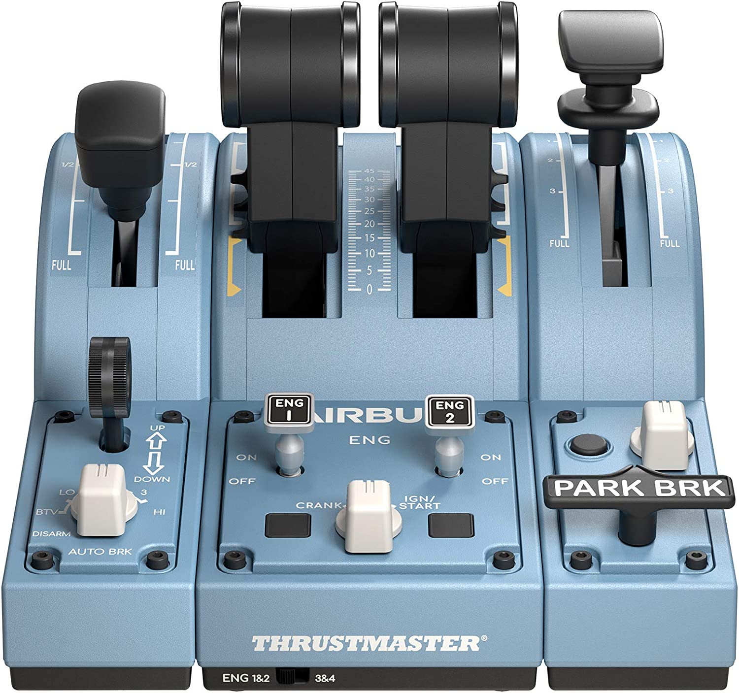 - Dual Throttles: The TCA Quadrant Airbus Edition features two separate thrust levers, inspired by their real counterparts found on Airbus airliners. For even more realistic use with four-engine aircraft (Airbus A380 type), two throttle quadrants can be linked together (additional throttle quadrant sold separately), giving you access to four thrust levers instead of two!