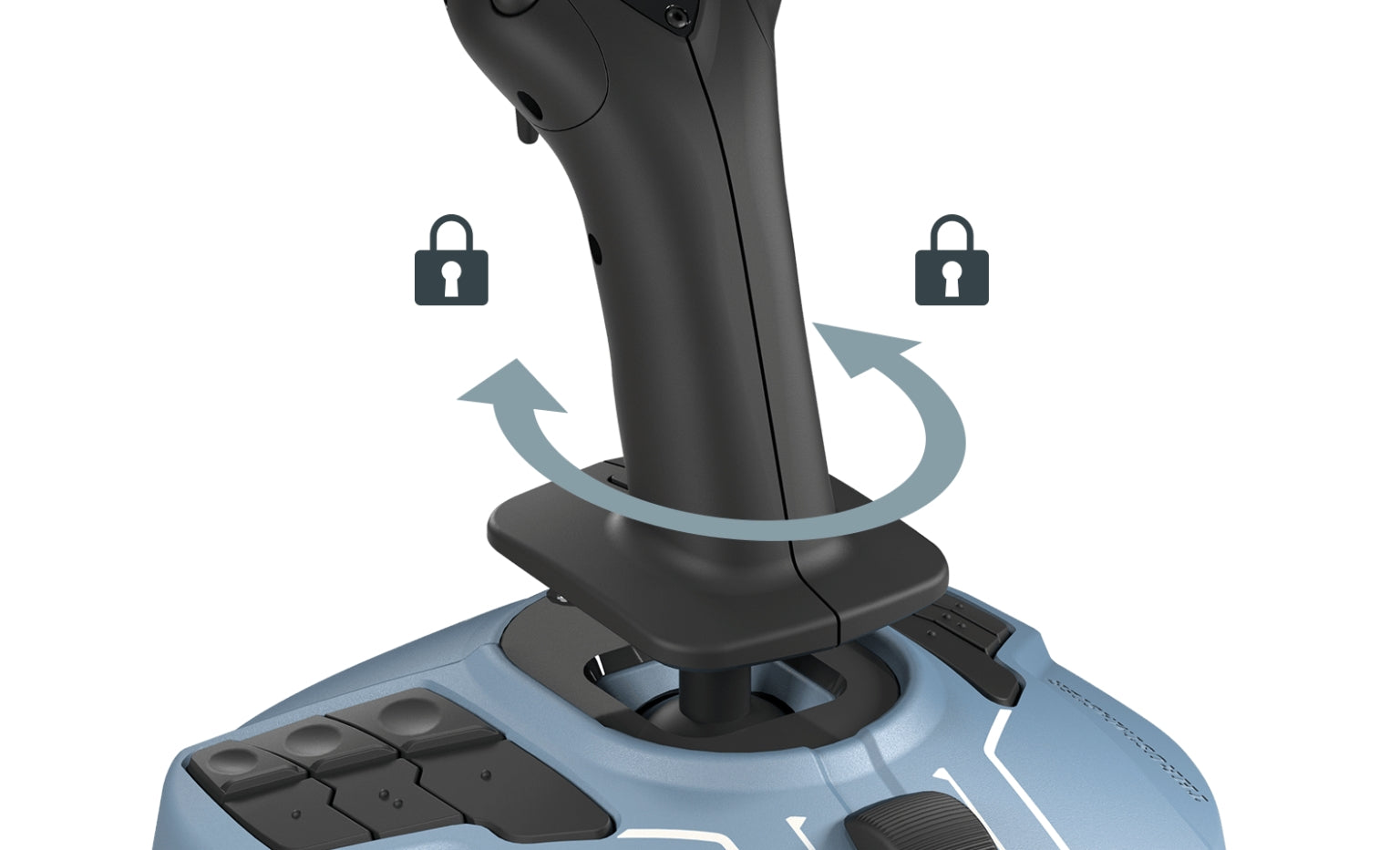 - Rudder Function: Controlled by stick rotation, the rudder can be used by rotating the sidestick’s handle to make flying easier for multitasking pilots. This rudder function built into the sidestick’s handle also includes a locking system, for a more realistic commercial flight experience.